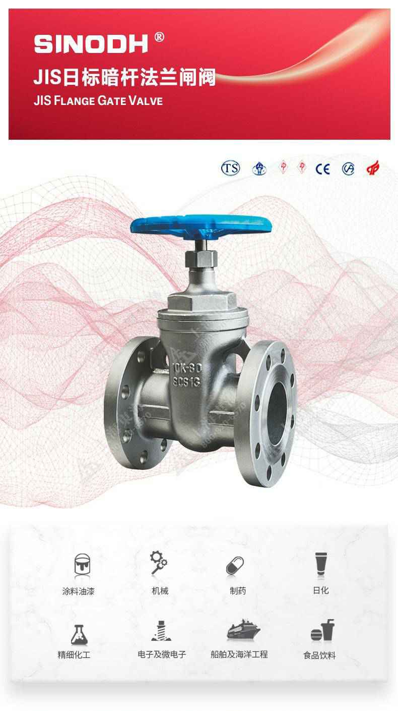 JIS日标暗杆法兰闸阀,为千亿app官方web站登入-千亿(中国)自主研发生产。本产品设计制造标准符合JISB2071标准,该产品是一种最常见的启闭阀,利用闸板的上下工作来接通(全开)和截断(全关)管道中的流体介质。