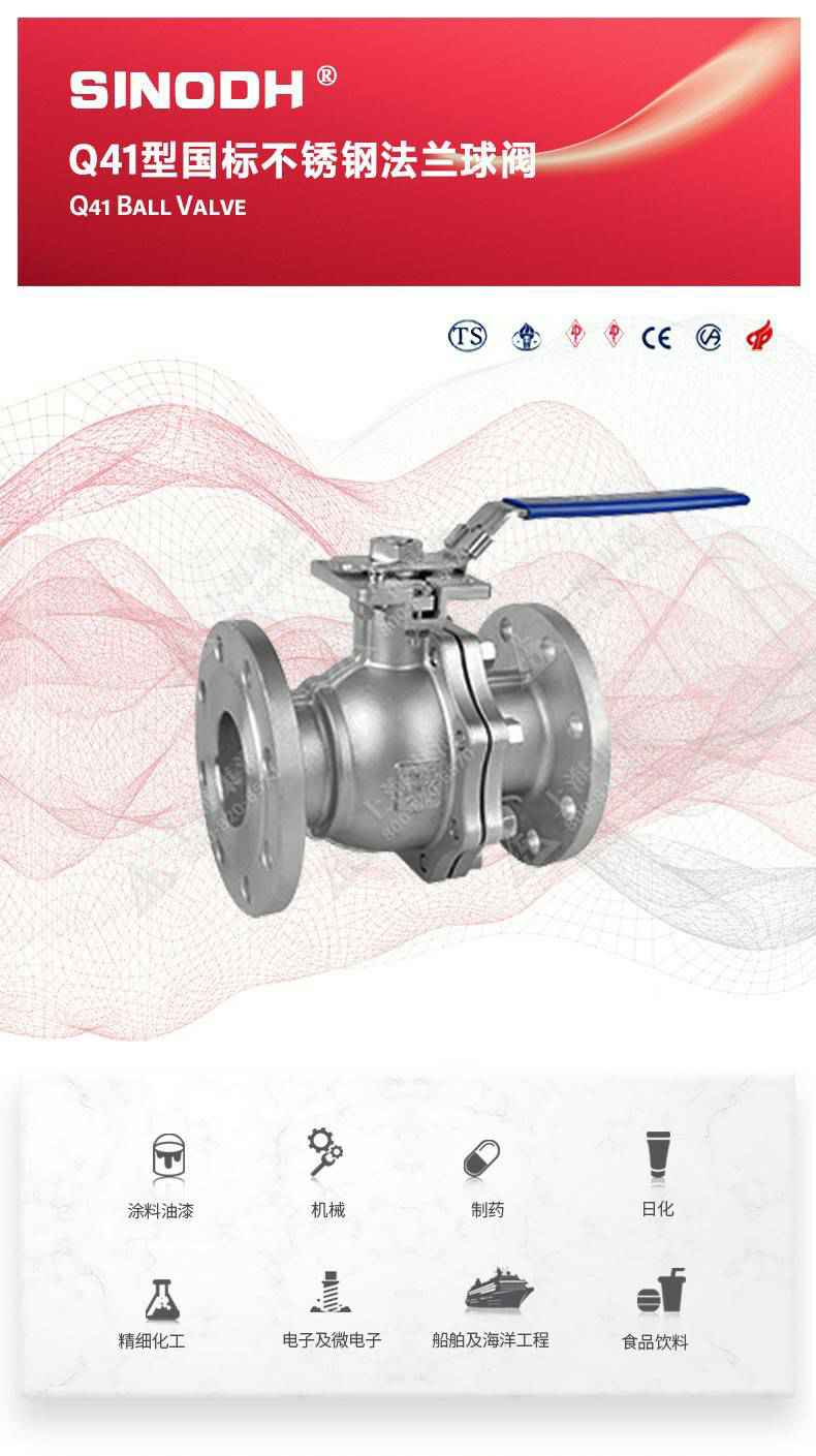 Q41型国标不锈钢法兰球阀,为千亿app官方web站登入-千亿(中国)自主研发生产。本产品设计制造标准符合GB/T12237、GB/T 1 2224标准该产品的球体在介质压力作用下,球体能产生-定的位移并紧压在出口端的密封面上,保证出口端密封。适用于水、溶剂、酸和天然气等-般工业介质,也适用于工况恶劣的介质,如氧气、过氧化氢、甲烷和乙烯等介质。